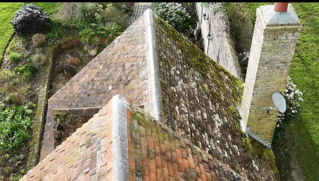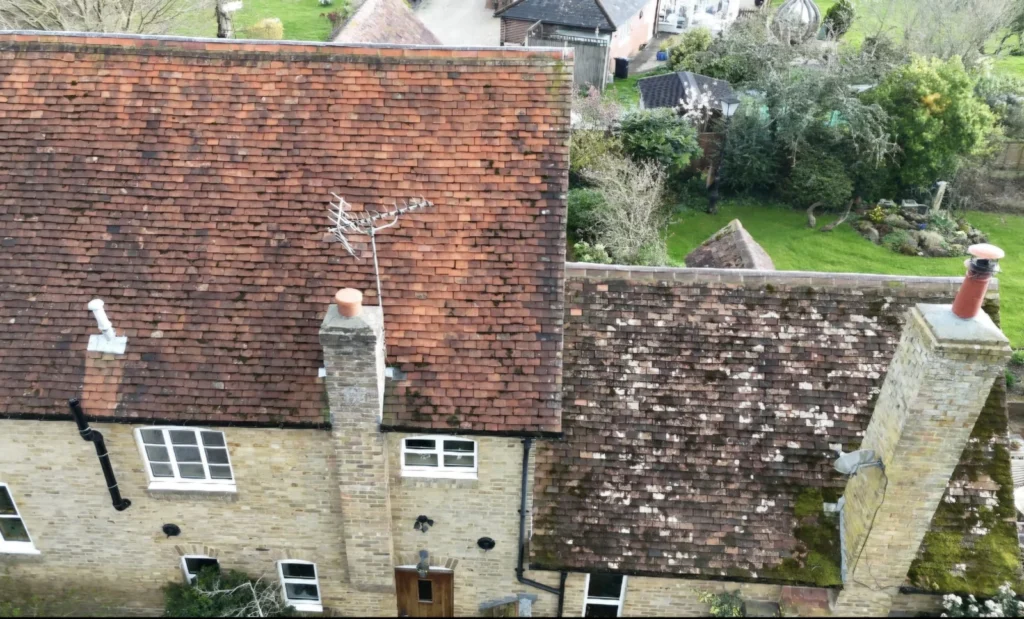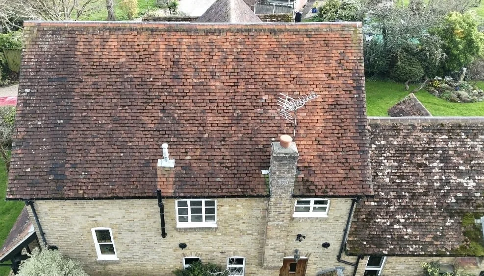 Because of the fragile nature of the peg tiles, aggressive pressure washing was out of the question. We used a careful, controlled manual scraping method followed by a soft-wash biocide treatment to kill the remaining spores without damaging the clay.